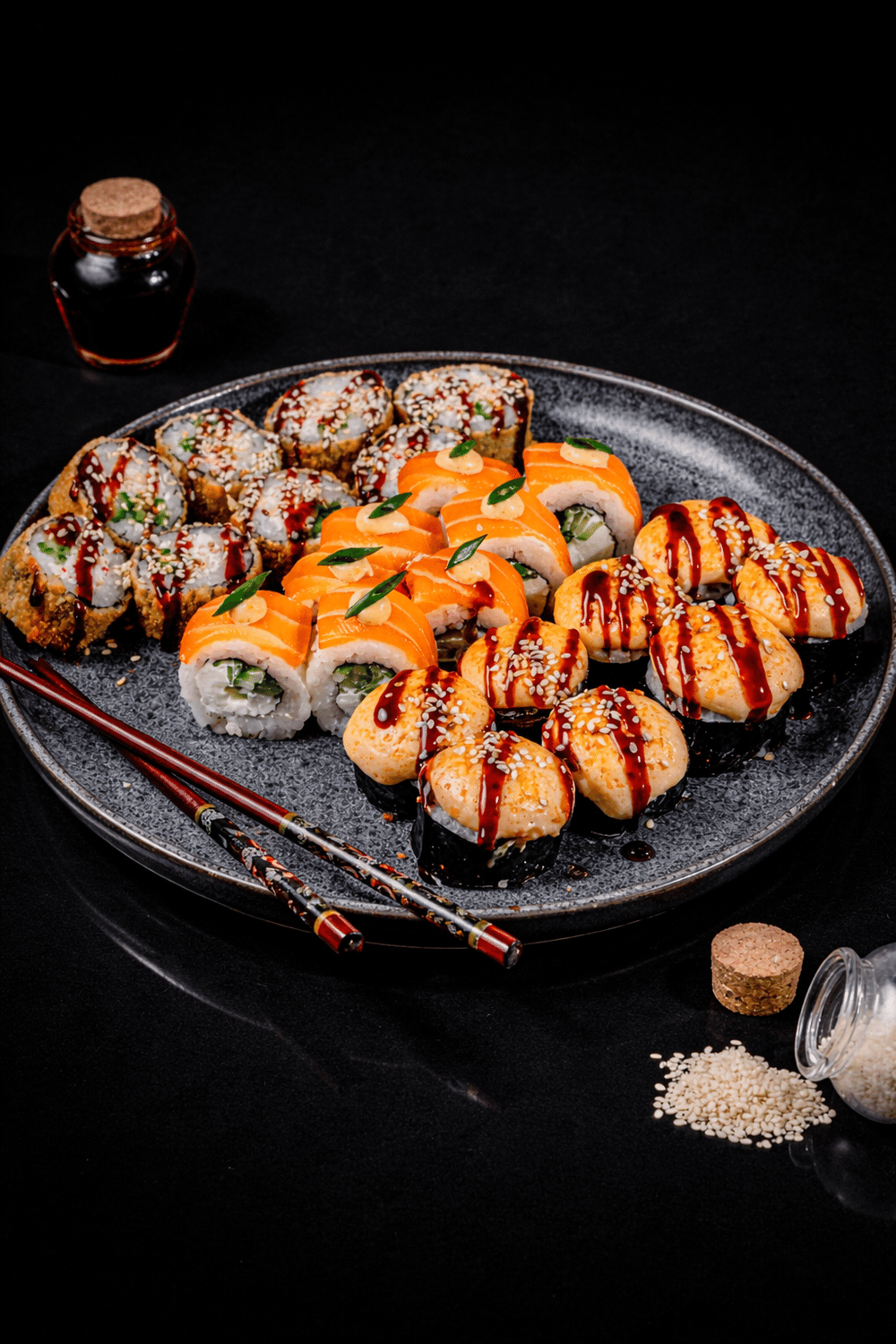 Filadelfiya, krablı isti roll, toyuqlu bişmiş roll.