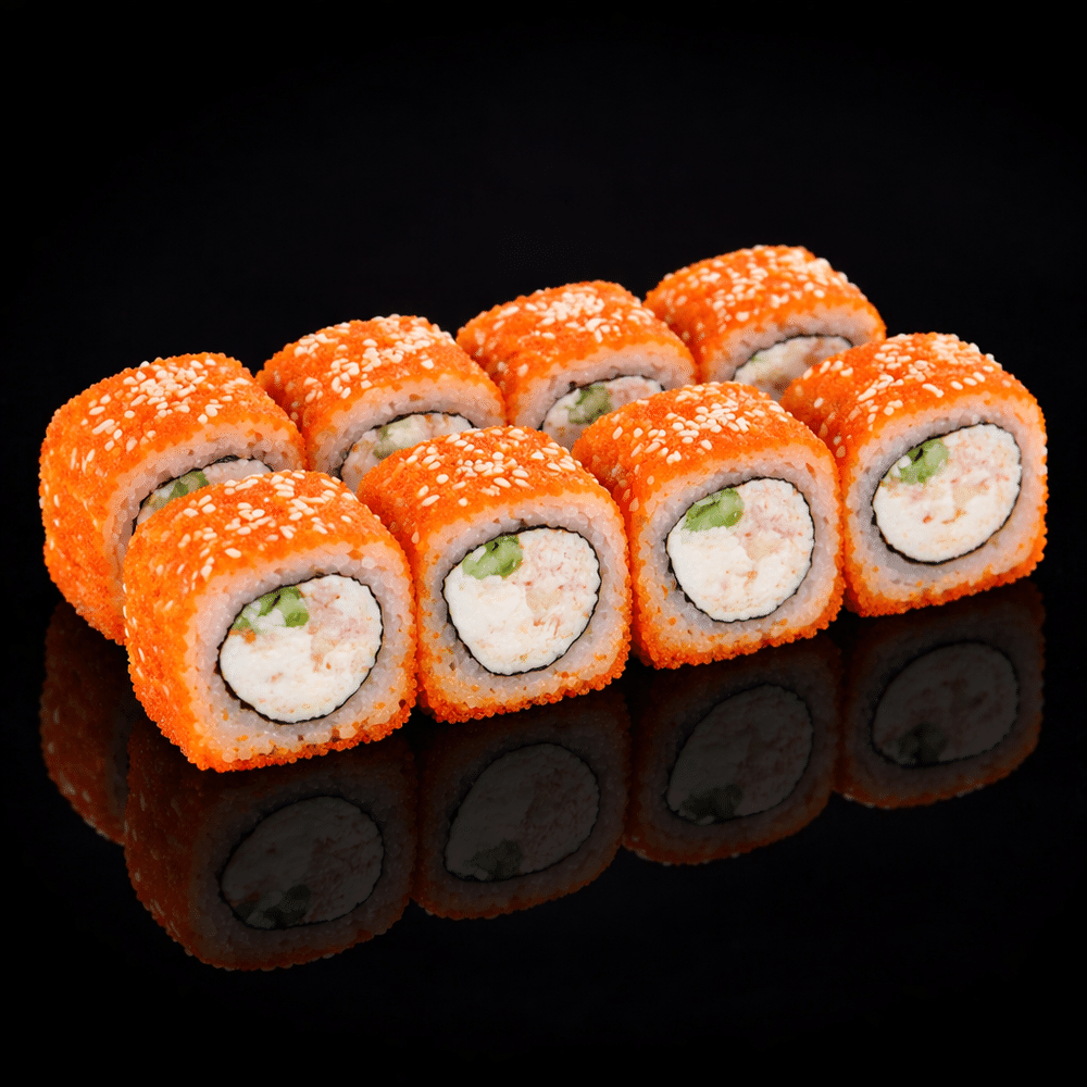 Qar dəniz məhsulu, masago kürüsü, krem pendir, xiyar, küncüt