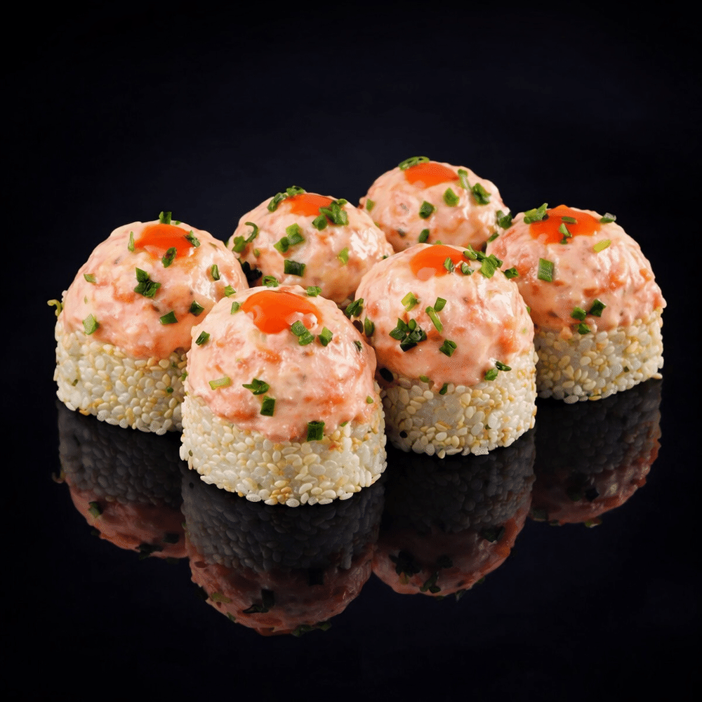 Xiyar, krem pendir, qar dəniz məhsulu, somon, Spicy sous, yaşıl soğan, Şiraçi sousu, küncüt