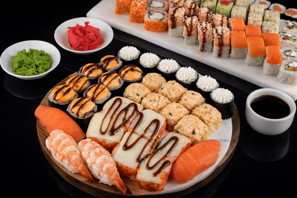 Filadelfiya, Qril Filadelfiya, Avokadolu roll, Kaliforniya, Snək Roll, Vitamin, Chicken Spicy, Bişmiş Kaliforniya, Toyuqlu bişmiş roll, Mini somonlu, Fish Cake, 2 ədəd somon nigiri, 2 ədəd qarides nigiri