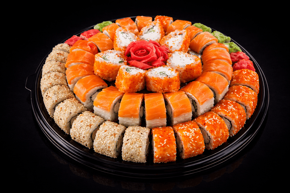Filadelfiya (72 ədəd) Filadelfiya, Kaliforniya, Qırmızı masagoda Kaliforniya, Yaşıl masagoda Kaliforniya, Küncütdə Kaliforniya, xiyarlı mini roll, Masagoda Filadelfiya, Mini Filadelfiya