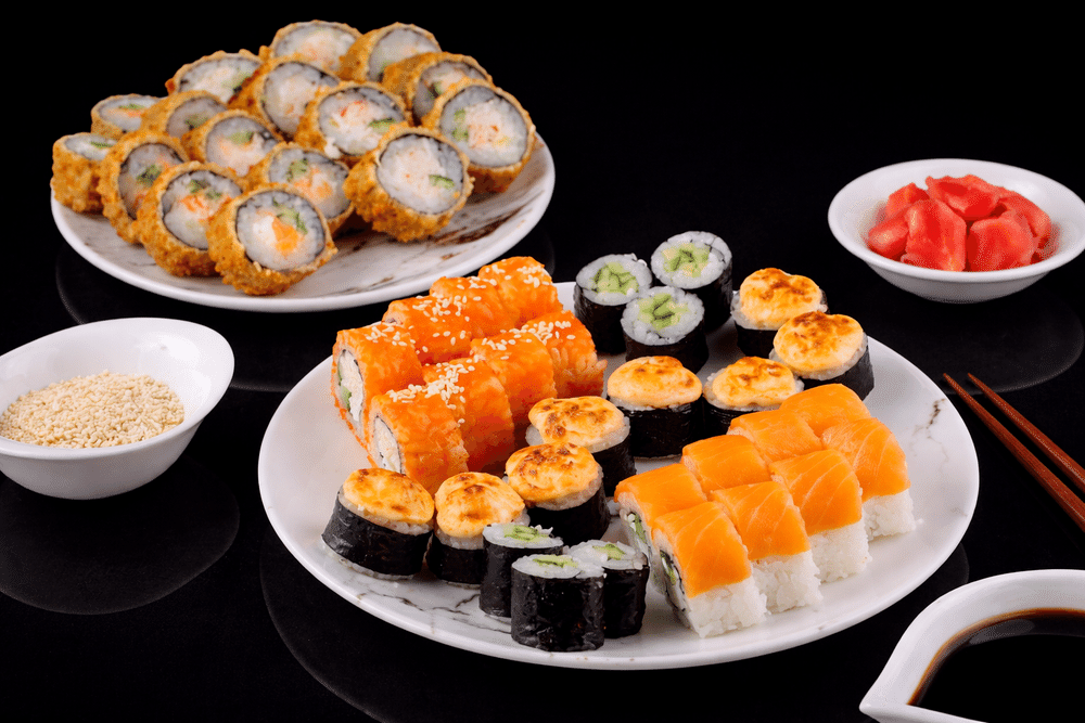 Filadelfiya, Kaliforniya, Krab Tempura, Somon Tempura, Krabla bişmiş roll, xiyarlı mini roll